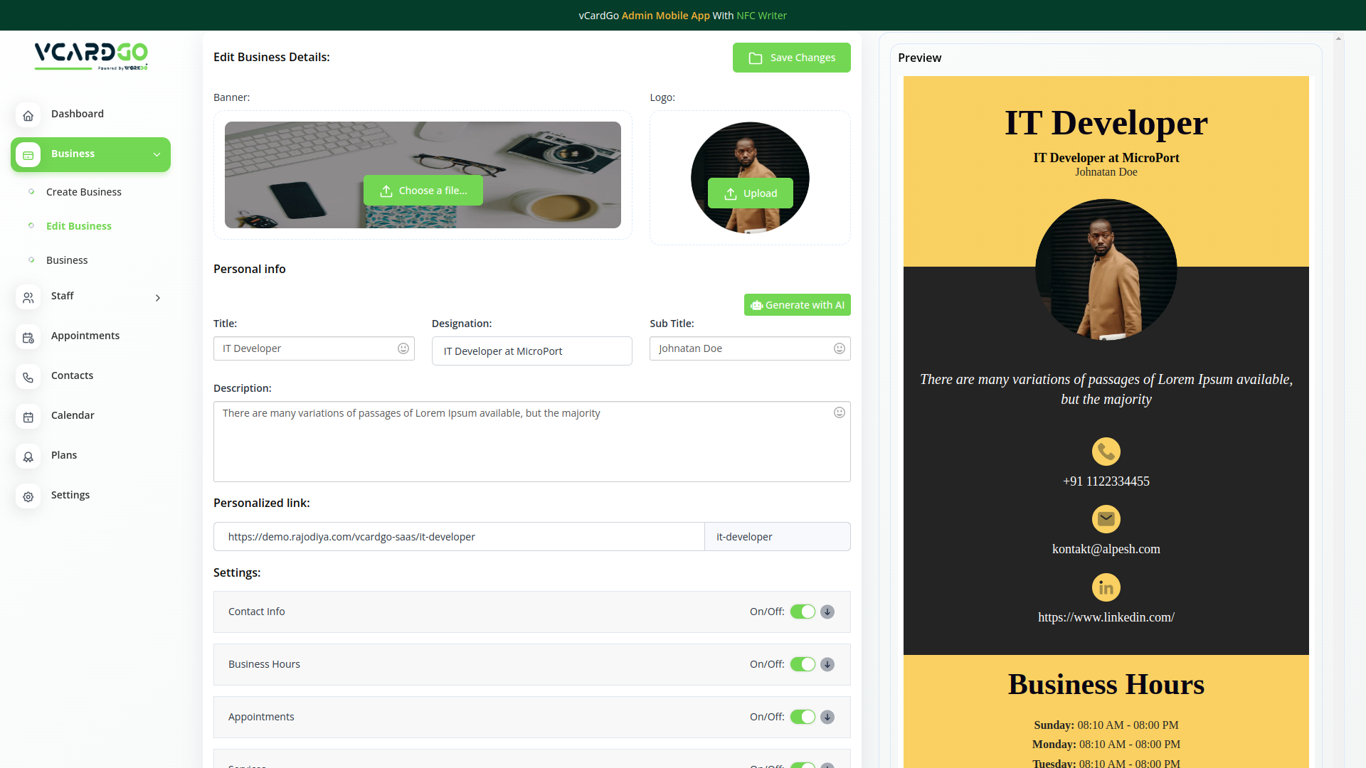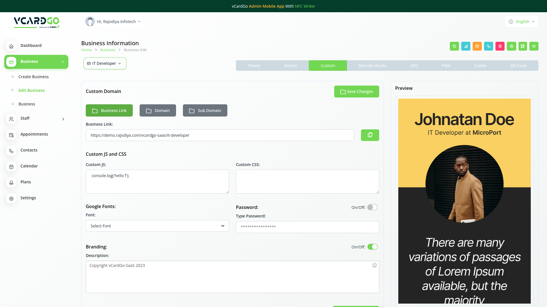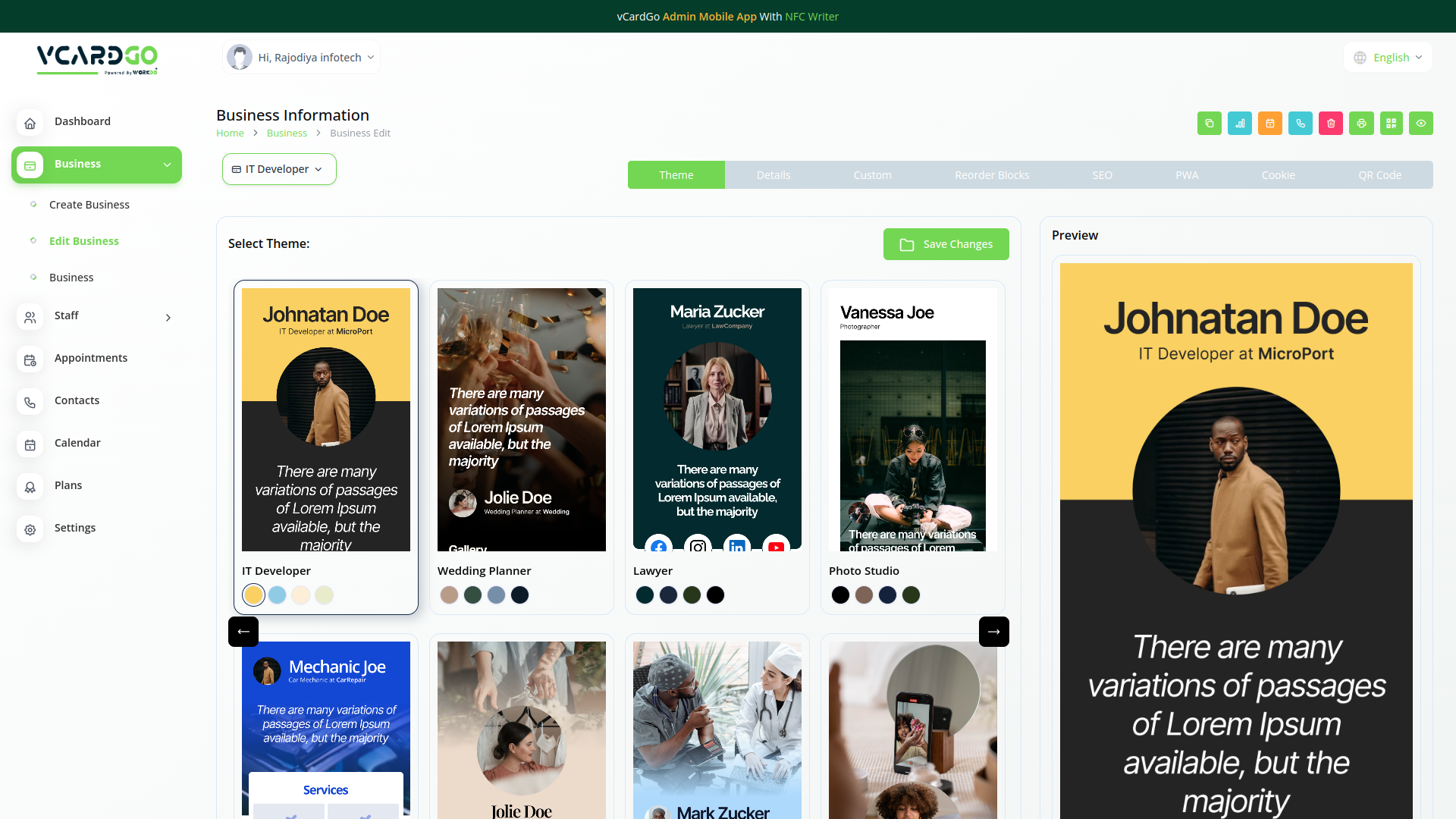 Create your business's digital cards with idcard.pk Choose one of the pre-made template or create your own to build an awesome card.